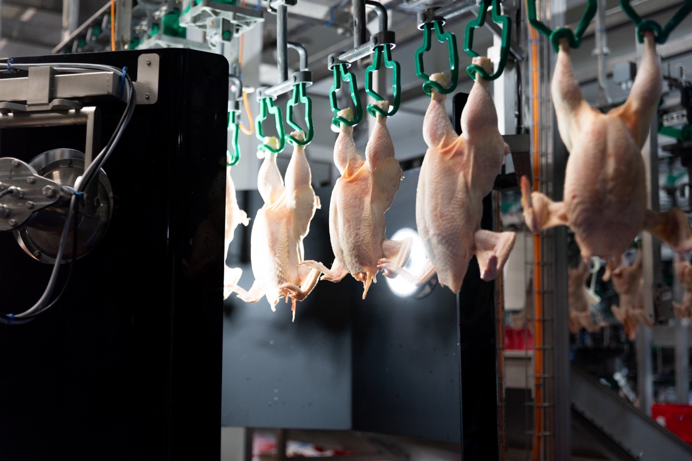 It's more compact and operates without flashing lights. The combination of front, back, and side cameras ensures that the whole bird is correctly graded everywhere, including the wing pits and groins, according to our exact parameters. The system has operated without a single failure since installation.