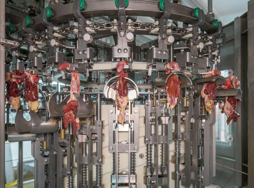The Meyn Maestro Plus Eviscerator is the next evolution in poultry processing, offering unmatched efficiency and precision in automatic giblet harvesting. With its advanced spring-loaded spoon mechanism, it ensures superior evisceration without compromising on quality. The system is designed to handle a wide bird-weight range within a single machine setting, delivering the highest uptime, minimal downtime, and reduced maintenance costs.